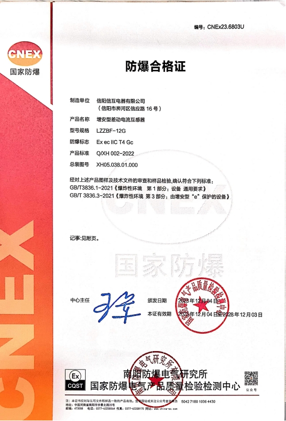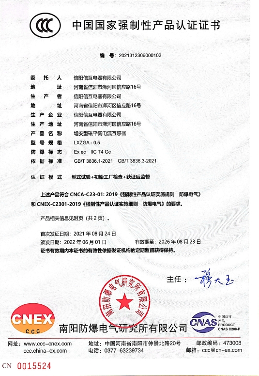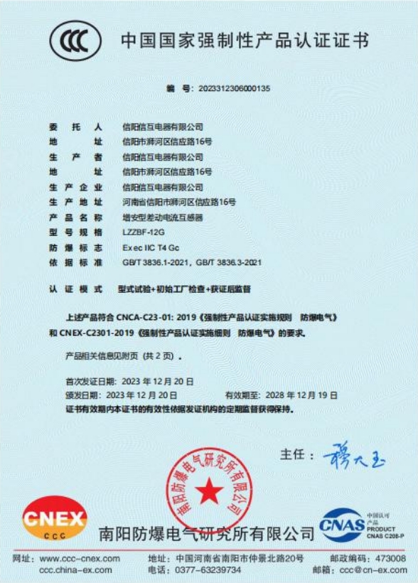 為滿足客戶大功率高壓電機差動保護需求及適應新的國標和市場政策變化,經過不懈努力和嚴格審核,我司成功取得了LZZBF-12G系列10KV增安型差動電流互感器3C國家強制認證證書!