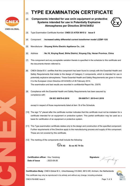 為滿足客戶大功率電機配套出口俄羅斯開拓國外業務市場的需求,適應當地俄羅斯聯邦法律《產品及認證服務法》要求。在第三方檢測機構協助下,首次取得俄羅斯GOST防爆電氣增安型差動電流互感器證書。至此完成國際電工IEC、歐盟CE、俄羅斯GOST國際常用的三大互感器出口認證。